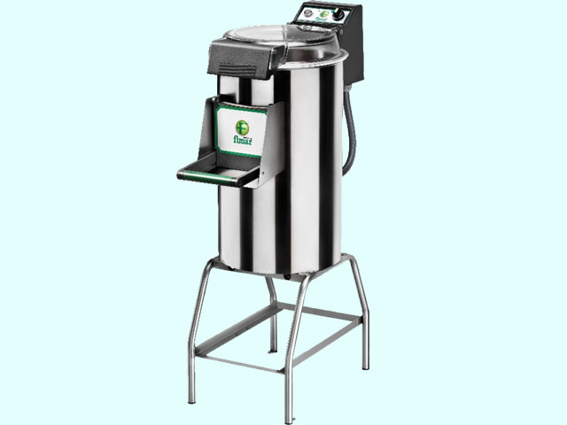 Gulilica za krompir. Struktura od nerđajućeg čelika AISI 304 – gornji poklopac od prozirnog prehrambenog polikarbonata – sigurnosni mikroprekidači na gornjem poklopcu i na ulazu – tipka za izbacivanje proizvoda – mjerač vremena 0÷4 minute – automatski mlaz vode za olakšavanje eliminacije otpada – abrazivna ploča koja se može izvaditi zatvorena PTA.