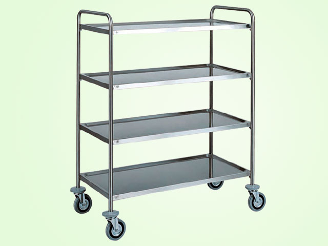 Cjevasta struktura ø 25 mm od nerđajućeg čelika AISI 304 – police od nerđajućeg čelika AISI 304, u obliku tacne sa zaobljenim rubovima i velikom debljinom, zvučno izolirane i sa satenskom završnom obradom – gumeni amortizer – višesmjerni točkovi ø 125 mm.