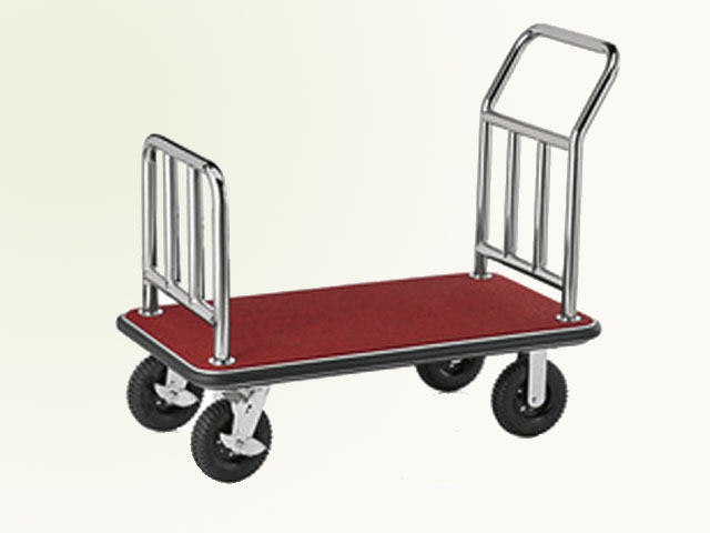 Hotelska kolica za prevoz prtljaga, nerđajući čelik, crni točkovi na naduvavanje od 200 mm, bordo tepih podloga