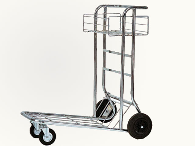 Hotelska kolica za prevoz prtljaga. Konstrukcija od hromiranog čelika.