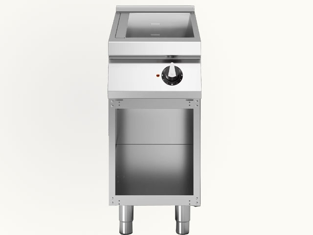 Električna bagno maria, na otvorenom ormaru. Izrađena od inoxa. Jedna posuda dimenzija 351 x 516 x 155 mm, zapremine 19 l. Snaga 1,5 kW. Monofazno napajanje.